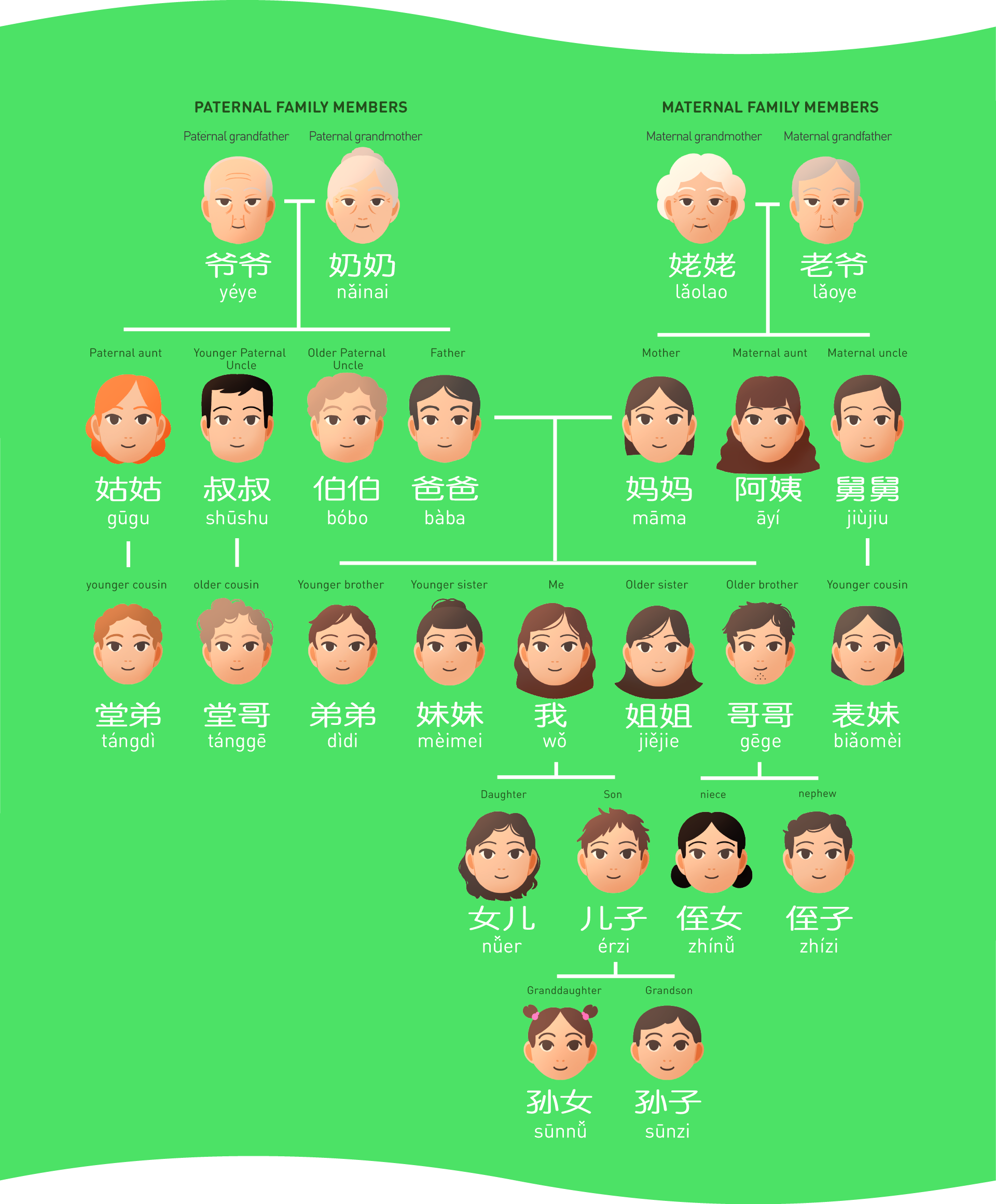 The vocabulary that comprises the Chinese family is varied and separates the titles of each family member by father and mother, thus, cousins and uncles and each family member will have a different name if it comes from the mother or father’s side.